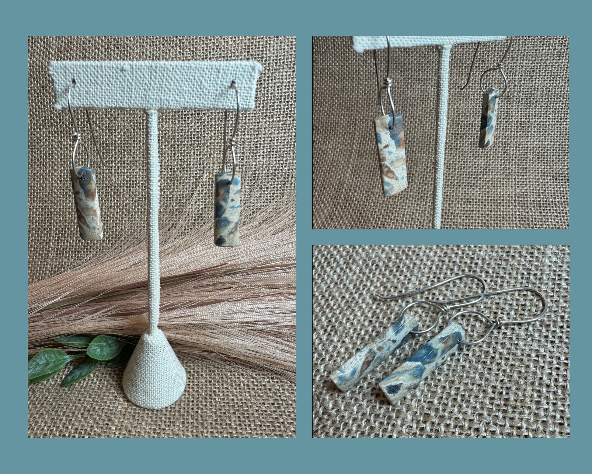 Crafted with slate blue jasper stones and wrapped in sterling silver wire, these earrings are the perfect addition to any jewelry collection.
