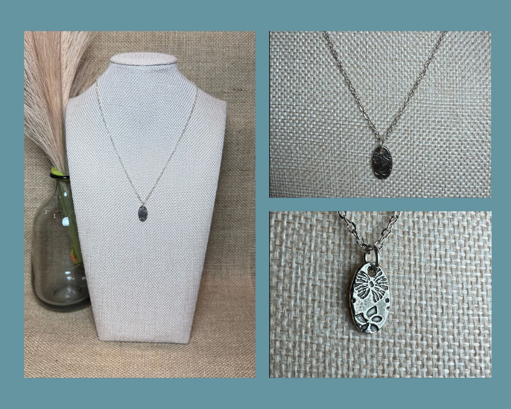 This delicate necklace features a little stamped sterling silver tropical flower pendant.
